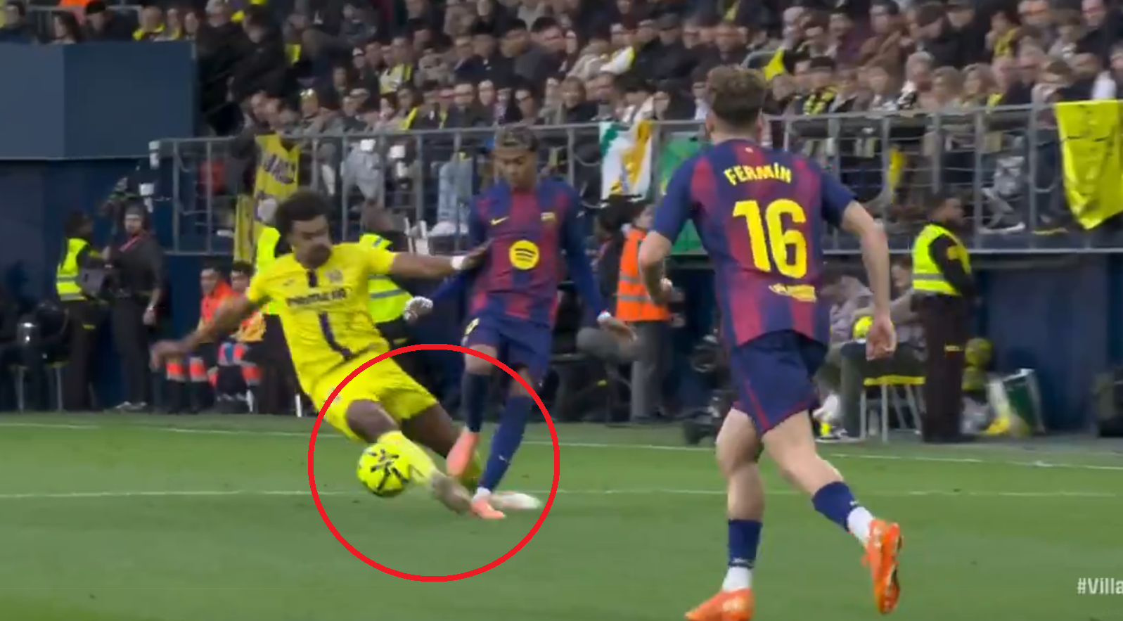 Renato Veiga bardzo ostro faulował Lamine'a Yamala. Młody Hiszpan po interwencji medycznej kontynuuje mecz z Villarreal, ale portugalski zawodnik od razu otrzymał czerwoną kartkę.