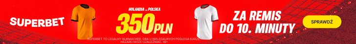 Bonus 350 PLN w Superbet za remis do 10. minuty meczu Holandia – Polska!