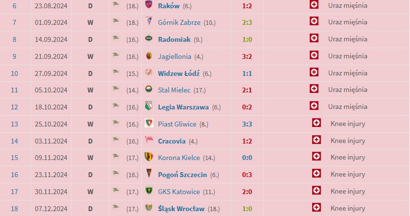 Biorąc pod uwagę, że jesienią w Gdańsku w spotkaniu tych ekip padł remis (3:3), potyczka przy ul. Stadionowej 1 nabiera szczególnego znaczenia dla losów dolnej części tabeli. I właśnie w takich okolicznościach biało-zielonym przyjdzie rywalizować bez swojej największej gwiazdy. – Po każdym meczu ktoś u nas pauzuje – nie rozpaczał jednak szkoleniowiec gdańszczan, John Carver. Tym bardziej że potyczka z drużyną Mateusza Stolarskiego to dla niego doskonała okazja, aby przekonać się, jak gra Lechii może wyglądać w przyszłym sezonie bez Bobcka.