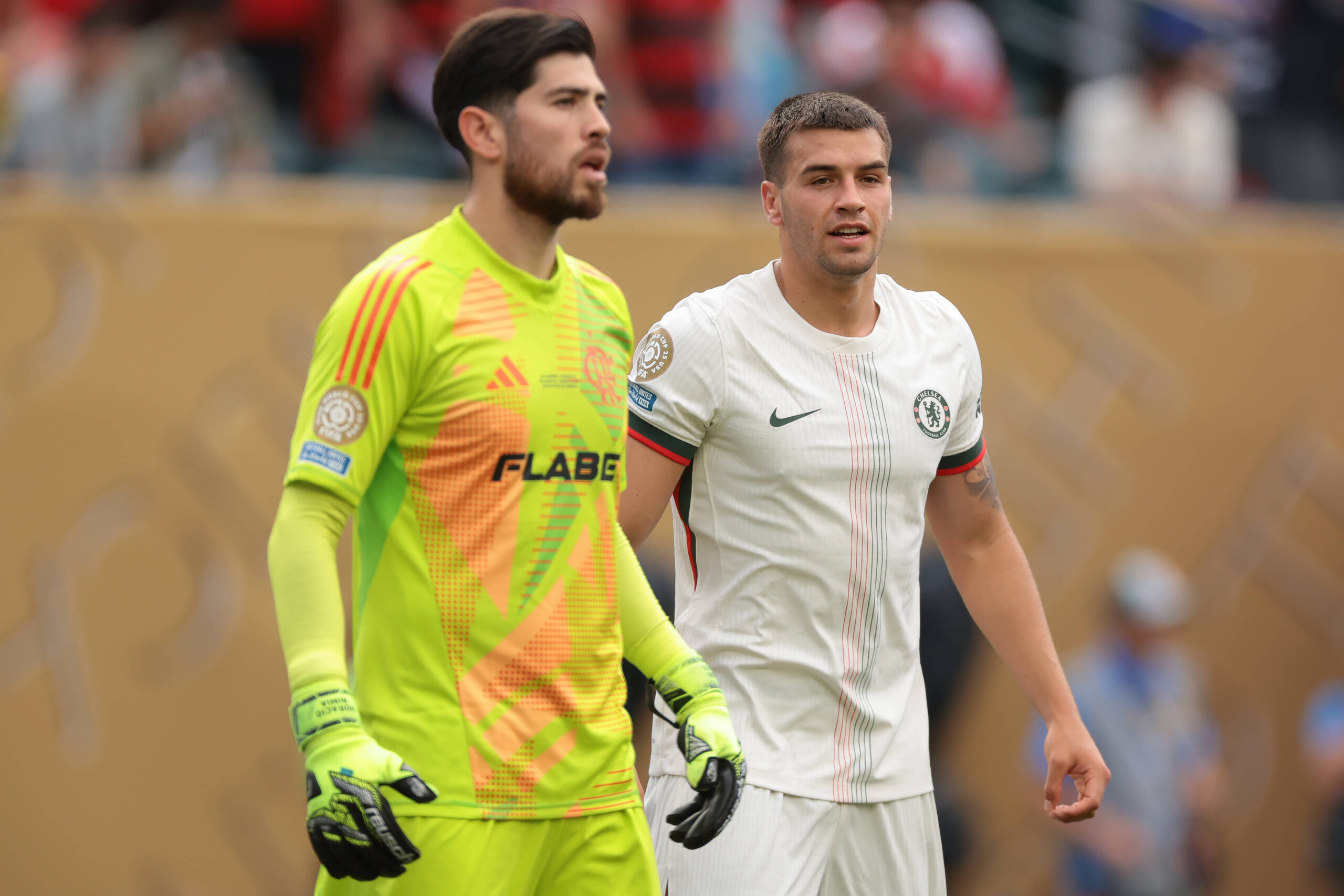 Philadelphia, USA, 20th June 2025. Agustin Rossi of CR Flamengo and Marc Guiu of Chelsea FC look on during the CR Flamengo vs Chelsea FIFA Club World Cup match at Lincoln Financial Field, Philadelphia. Picture credit should read: Jonathan Moscrop / Sportimage EDITORIAL USE ONLY. No use with unauthorised audio, video, data, fixture lists, club/league logos or live services. Online in-match use limited to 120 images, no video emulation. No use in betting, games or single club/league/player publications. SPI_060_JM_FLAMENGO_CHELSEA_ SPI-3977-0060