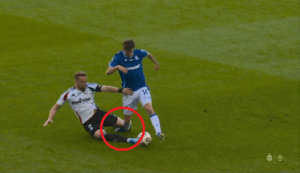 Rafał Augustyniak otrzymał czerwoną kartkę za ostre wejście w Leo Bengtssona w trakcie starcia Lecha z Legią. Arbiter najpierw pokazał żółtą kartkę, jednak po analizie VAR dał bezpośrednią, czerwoną kartkę.