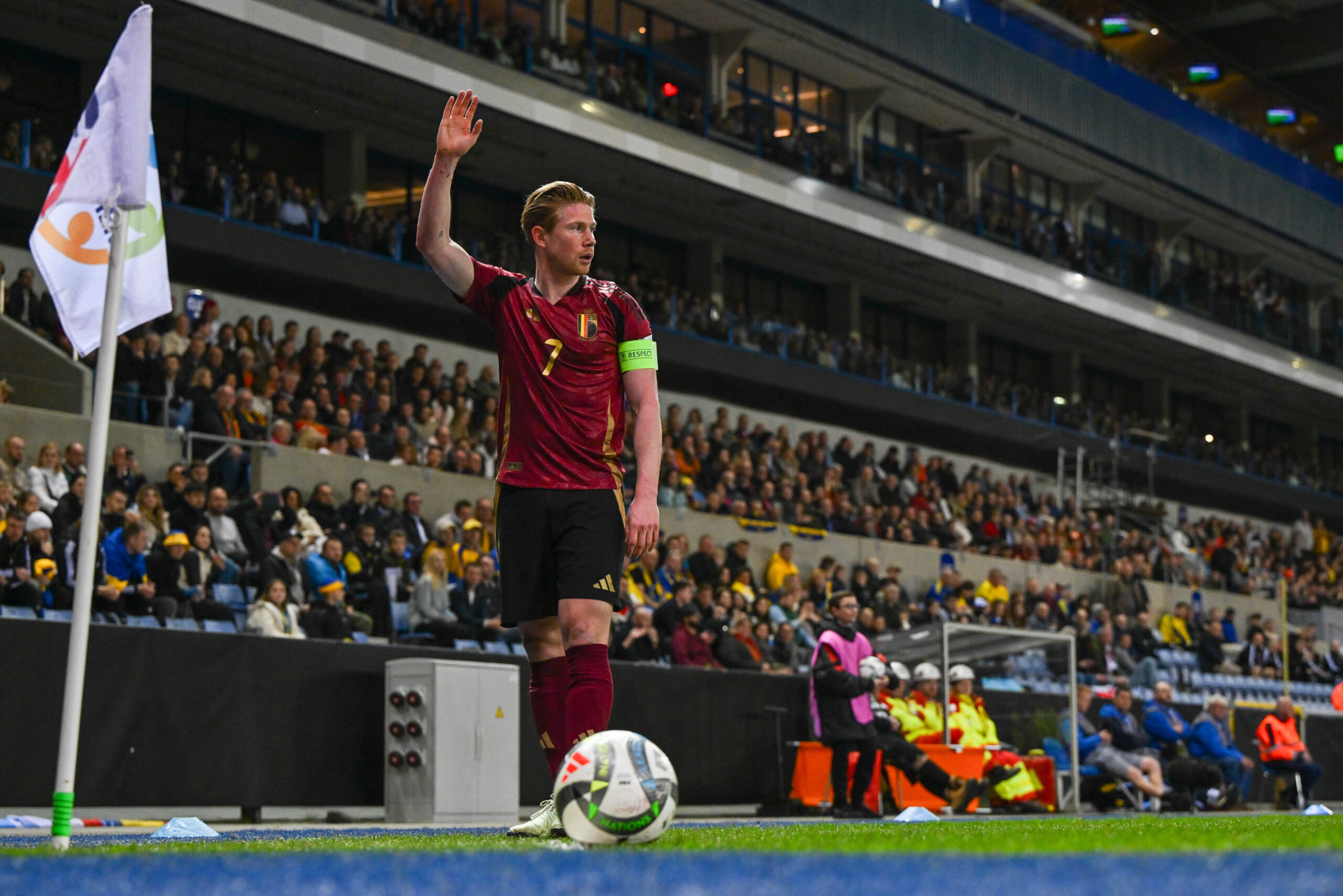 250323 BELGIUM VS UKRAINE Kevin De Bruyne 7 of Belgium pictured in action during a soccer game between the national teams of Belgium, called the Red Devils and Ukraine in the second leg of the play-offs of the 2024-25 UEFA Nations League competition, on Sunday 23 March 2025 in Genk , Belgium . PHOTO isosport David Catry Genk Belgium PUBLICATIONxNOTxINxBELxUKxUSA Copyright: xDavidxCatryx 20250323DSC_8333