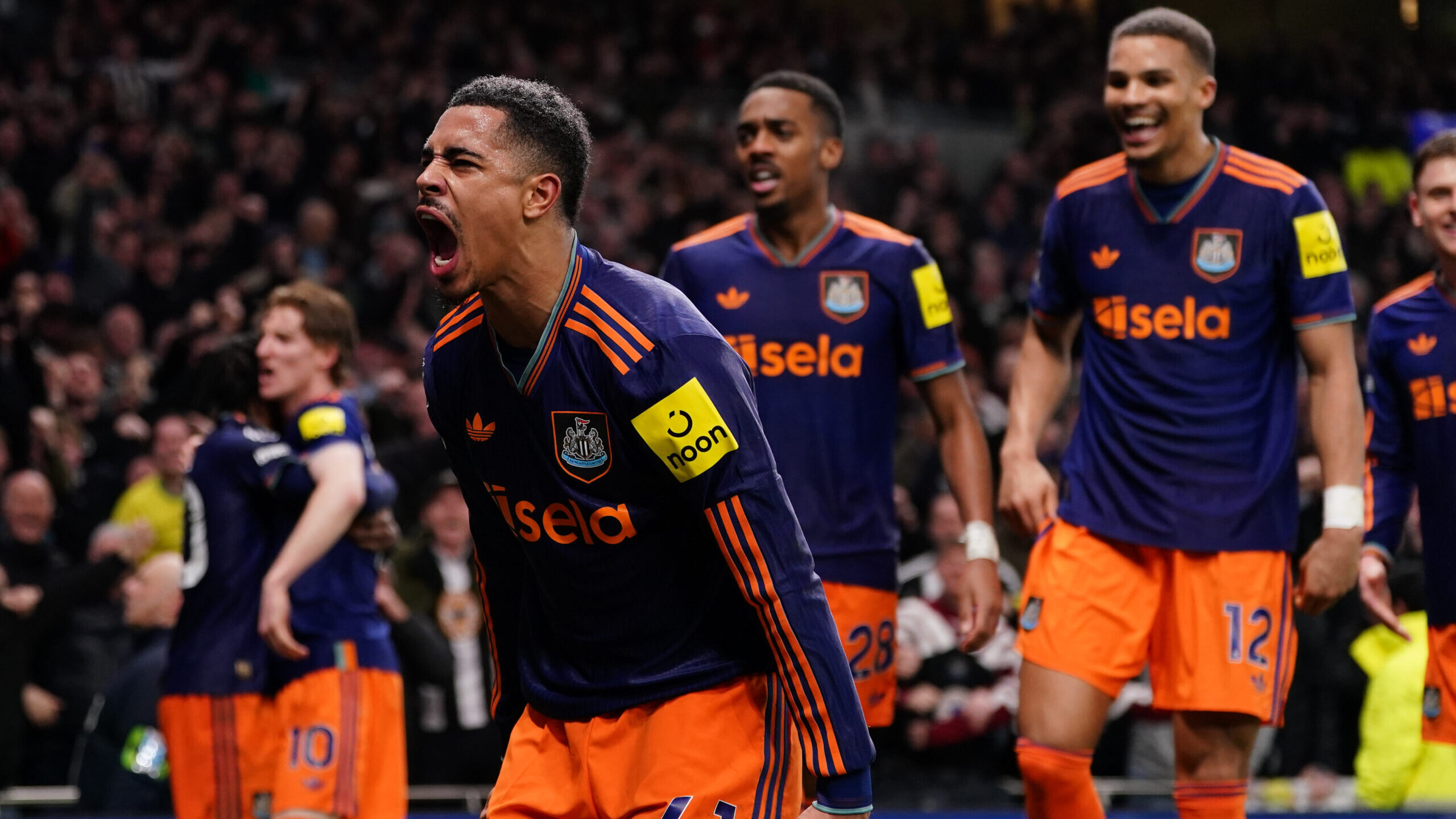 Jacob Ramsey of Newcastle United celebrates with fans after goal during the Premier League match Tottenham Hotspur vs Newcastle Untied at Tottenham Hotspur Stadium, London, United Kingdom on 10 February 2026
