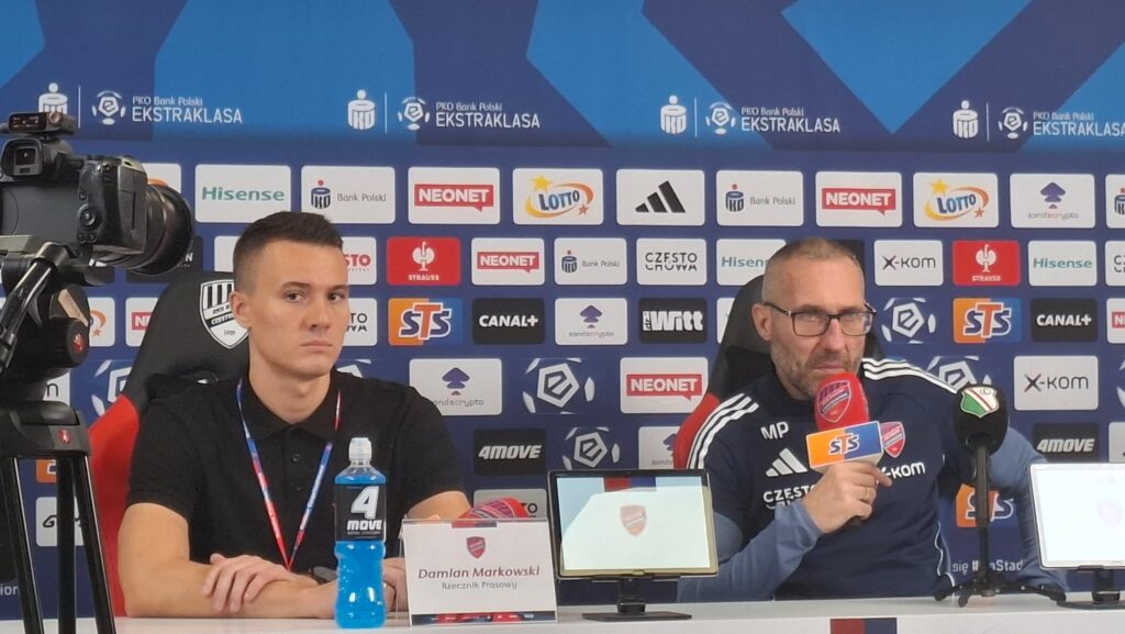 Pomeczowa konferencja miała o tyle nietypowy przebieg, że na prośbę gości, wyjątkowo jako pierwszy pojawił się na niej szkoleniowiec gospodarzy. Marek Papszun stwierdził, że nie jest zadowolony, bo nie udało się wygrać z Legią. Na jego twarzy można było jednak dostrzec ulgę, że udało się nie przegrać. Potwierdzały to zresztą jego słowa: – Trudny mecz. Mieliśmy bardzo dobre 20 minut, ale później nam to trochę siadło. Legia wyszła na zasłużone prowadzenie, ale nie poddaliśmy się, wyrównaliśmy. Początek drugiej połowy znowu mieliśmy dobry, natomiast nie potrafiliśmy złapać rytmu, by stworzyć wiele sytuacji. Wybroniliśmy się, co w naszej trudnej sytuacji jest dobrym prognostykiem na przyszłość.