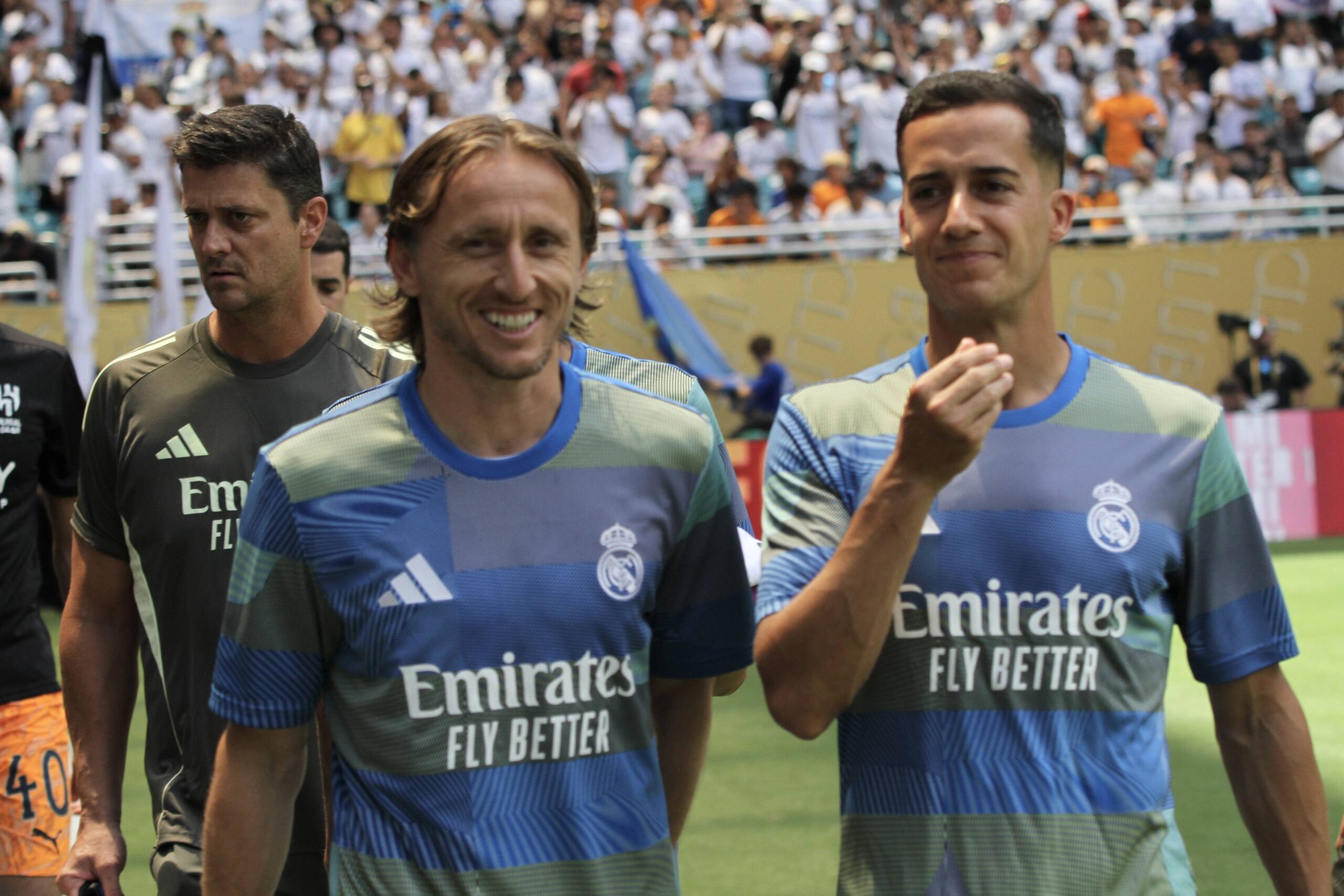 Real madrid c.f. - al hilal-copa do mundo de clubes da fifa. spo real madrid c.f. - al hilal-fifa club world cup. June 18, 2025, miami, florida, usa: mudric luka and vazquez lucas of real during soccer match between real madrid c.f. And al hilal in the group stage of fifa club world cup taking place at hard rock stadium in miami. Credit: niyi fote/thenews2 Foto: Niyi Fote/Thenews2/imago images SPO PUBLICATIONxNOTxINxUSA Copyright: xNiyixFotex