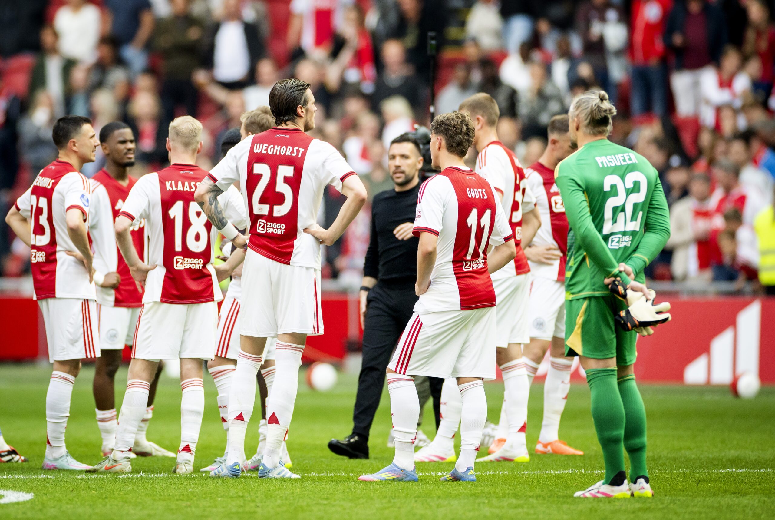 5/18/2025 - AMSTERDAM - Ajax players and Ajax coach Francesco Farioli after the Dutch Eredivisie match between Ajax Amsterdam and FC Twente at the Johan Cruijff ArenA on May 18, 2025 in Amsterdam, Netherlands. ANP KOEN VAN WEEL /ANP/Sipa USA