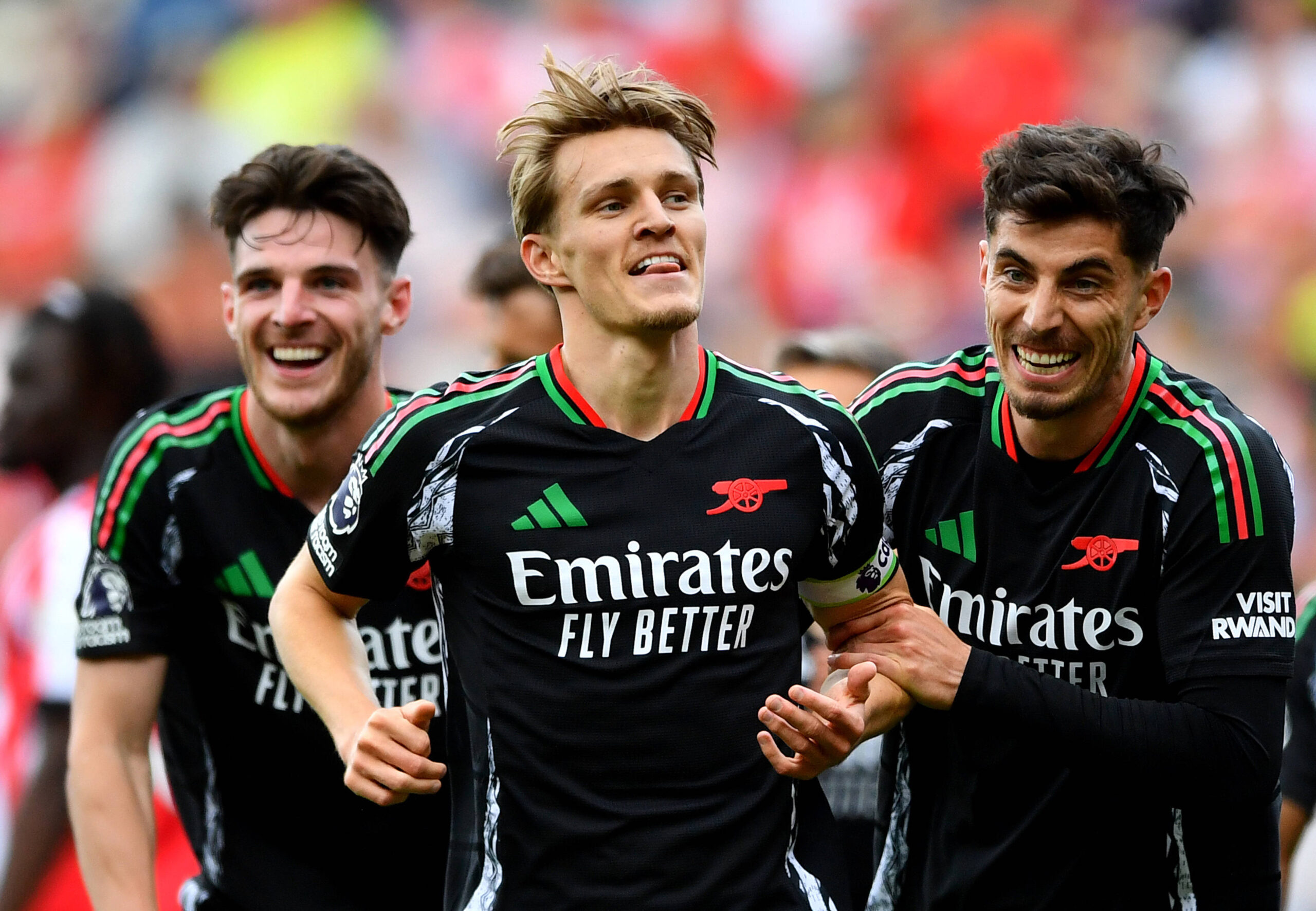 Southampton v Arsenal, Premier League, Football, St. Marys Stadium, Southampton, Hampshire, UK - 25 May 2025 Martin Odegaard of Arsenal celebrates scoring his teams second goal making the score 1-2 Southampton St Marys Stadium Hampshire GBR, UK NEWSPAPERS OUT Copyright: xMarkxEnfieldx
