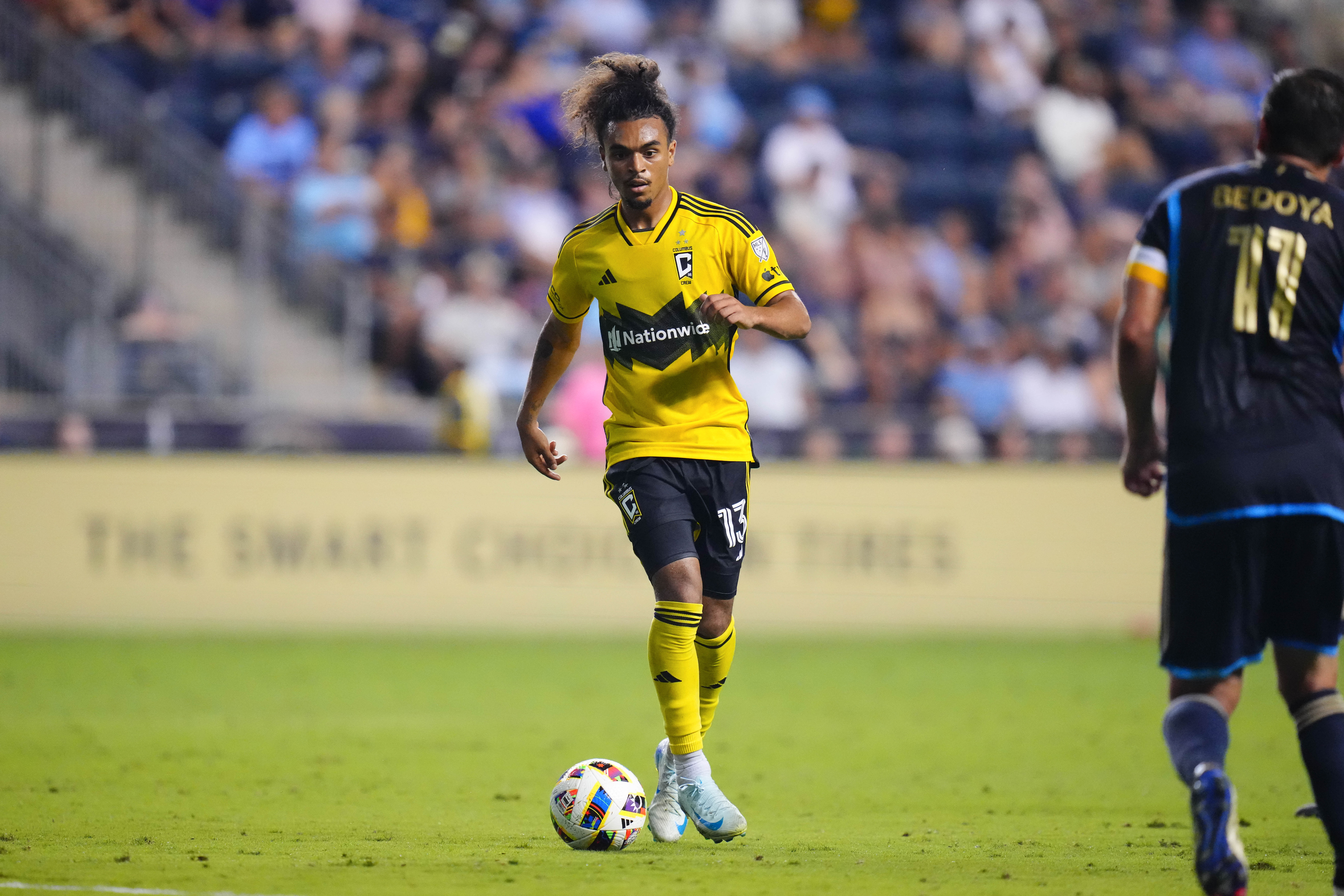 August 28, 2024: Columbus Crew Midfielder Aziel Jackson (13) controls the ball during the second half of an MLS match against the Philadelphia Union at Subaru Park in Chester, Pennsylvania.  Kyle Rodden/CSM/Sipa USA (Credit Image: © Kyle Rodden/Cal Sport Media/Sipa USA)