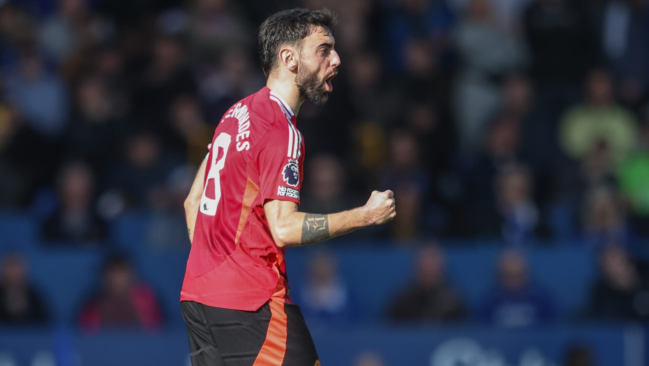 Bruno Fernandes of Manchester United celebrates his goal to make it 2-1 during the Premier League match Everton vs Manchester United at Goodison Park, Liverpool, United Kingdom, 22nd February 2025