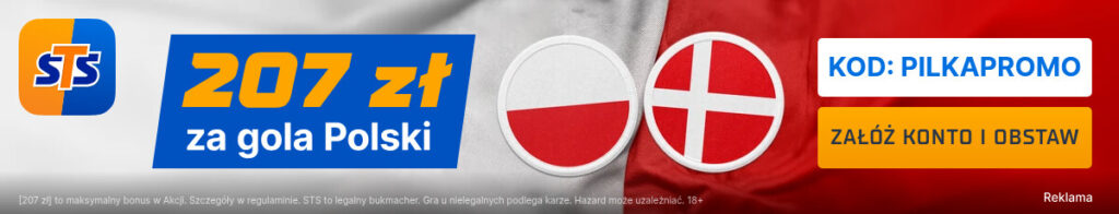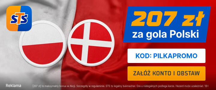 Specjalna promocja w STS! Za gola Polek w spotkaniu z Dunkami można zgarnąć nawet 207 złotych. ZAREJESTRUJ SIĘ z kodem PILKAPROMO i weź udział w Akcji. Regulamin promocji.