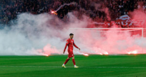 W drugiej połowie meczu Polski z Holandią arbiter musiał przerwać spotkanie. Na murawie pojawiły się race rzucane przez polskich kibiców.