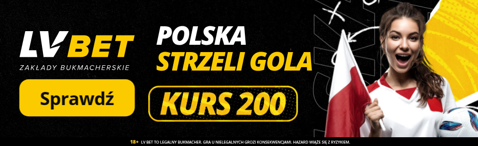 Wpłać minimum 50 PLN i postaw za dokładnie 1 PLN ze środków własnych lub bonusowych zakład z oferty głównej na to, że Polska zdobędzie bramkę w spotkaniu z Holandią. Jeśli Twój zakład będzie wygrany, bukmacher LV BET policzy Ci wygraną po kursie 200! Promocja jest ważna od 02.09.2025 (od godziny 10:00) do 04.09.2025 (do godziny 20:45). Regulamin.