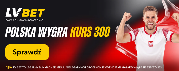 Stawka tego meczu jest ogromna i LV BET to wie. Dlatego polski legalny bukmacher przygotował dla nowych graczy wyjątkową ofertę! Kurs 300.00 na wygraną naszej reprezentacji z Albanią!