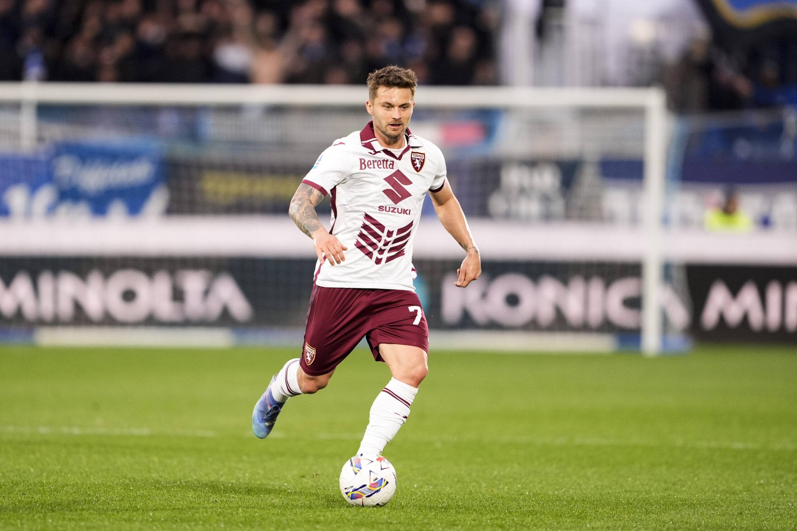 Torino’s Karol Linetty during the Serie A soccer match between Como v Torino FC at the Sinigaglia in Como - April 13, 2025. Sport - Soccer (Photo by Fabio Ferrari/LaPresse) (Photo by Fabio Ferrari/LaPresse/Sipa USA)