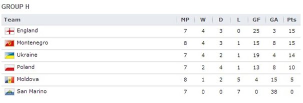 Teraz konkrety. W siedmiu spotkaniach zgromadziliśmy na swoim koncie dziesięć punktów. Ukraina przy takiej samej ilości gier ma tych punktów czternaście, natomiast Anglia piętnaście. Czarnogóra rozegrała jedno spotkanie więcej i może się pochwalić dokładnie takim samym dorobkiem punktowym jak Synowie Albionu.