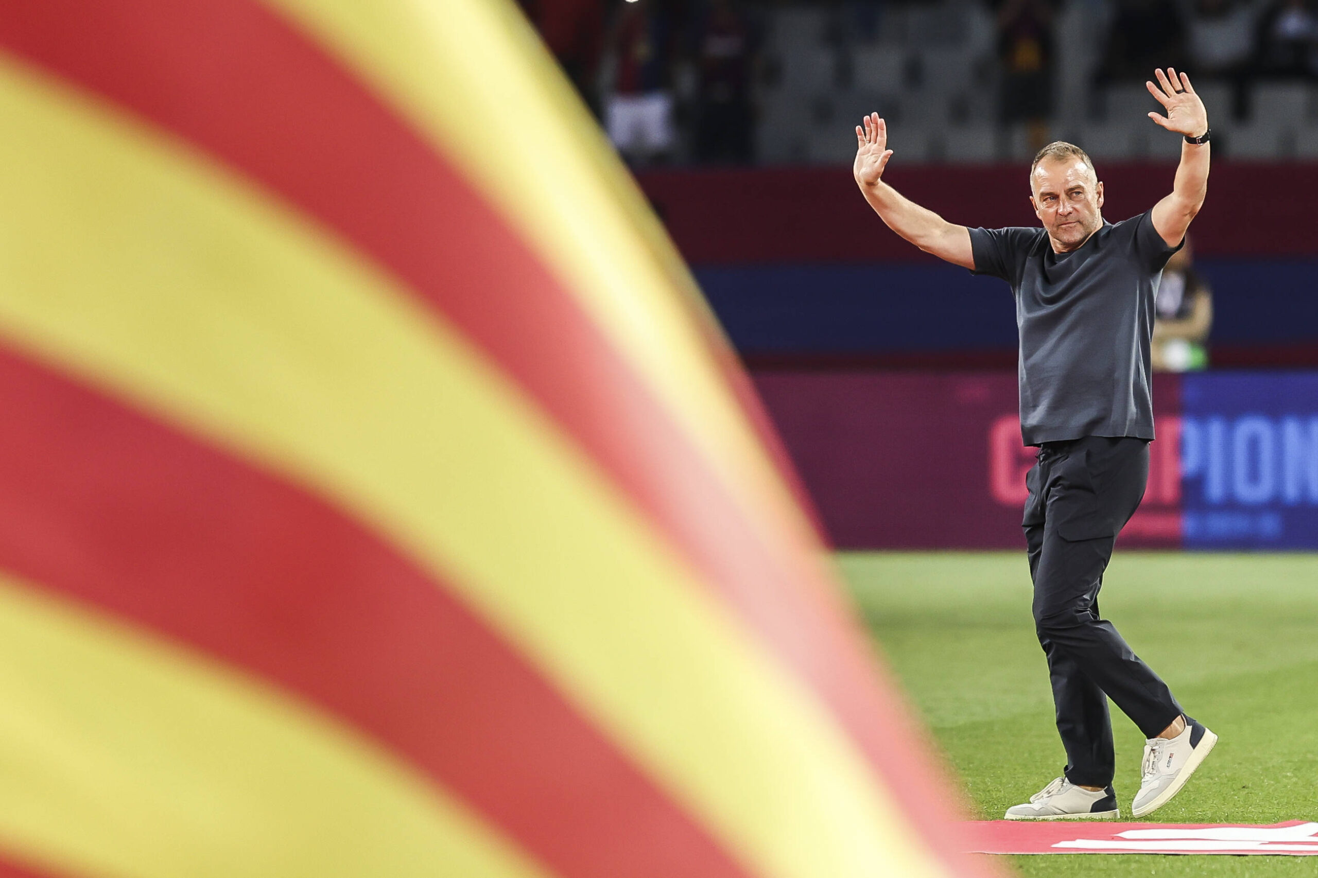 FC Barcelona, Barca v Villarreal, LaLiga football, Barcelona, Spain Barcelona, Spain. 18th, May 2025. Head coach Hansi Flick of FC Barcelona in celebrationg after winning LaLiga after the match between FC Barcelona v Villarreal at the Estadio Olimpico de Montjuic in Barcelona. Spain, Barcelona PUBLICATIONxNOTxINxDENxNORxFINxBEL Copyright: xGonzalesxPhoto/AinhoaxRodriquezxJarax
