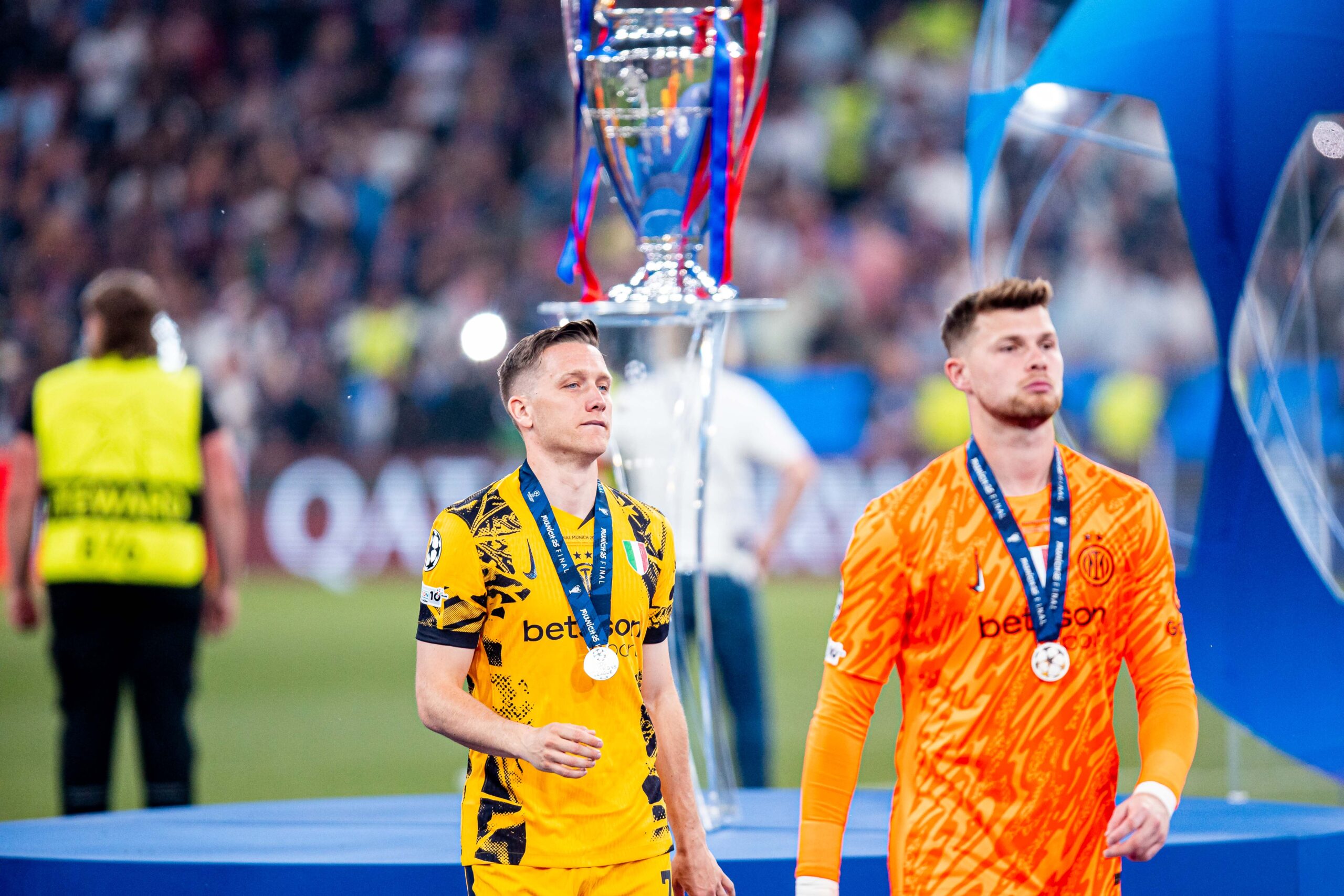 Piotr Zielinski odbierajacy medal with medal and trophy uefa champions league