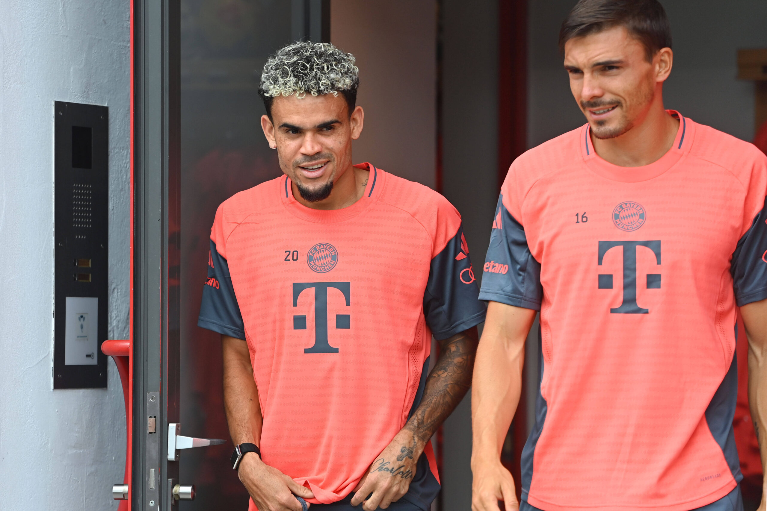 v.li:Luis DIAZ Bayern Muenchen, Joao PALHINHA Bayern Muenchen. Training FC Bayern Muenchen auf dem Trainingsgelaende an der Saebener Strasse am 31.07.2025. Fussball 1. Bundesliga,Saison 2025/2026. *** from left Luis DIAZ Bayern Muenchen , Joao PALHINHA Bayern Muenchen Training FC Bayern Muenchen on the training ground at Saebener Strasse on 31 07 2025 Soccer 1 Bundesliga,Season 2025 2026