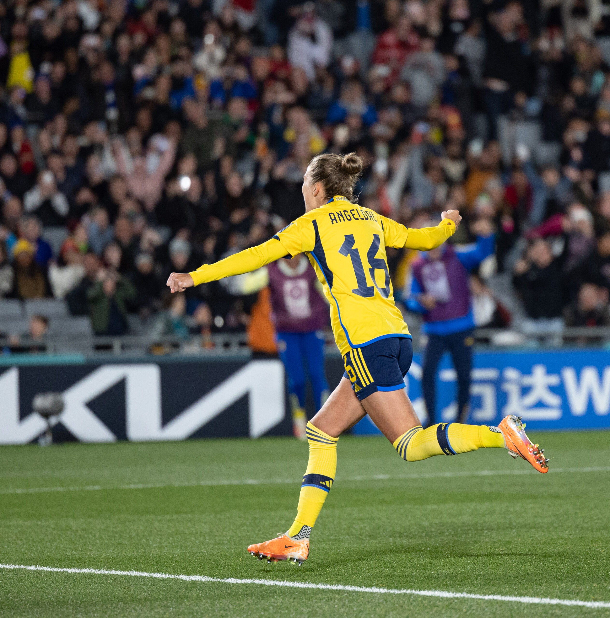 Auckland, New Zealand, August 11th 2023: Filippa Angeldal (16 Sweden) celebrates after scoing during the FIFA Womens World Cup 2023 quarter final football match between Japan and Sweden at Eden Park in Auckland, New Zealand.  (Ane Frosaker / SPP) (Photo by Ane Frosaker / SPP/Sipa USA)