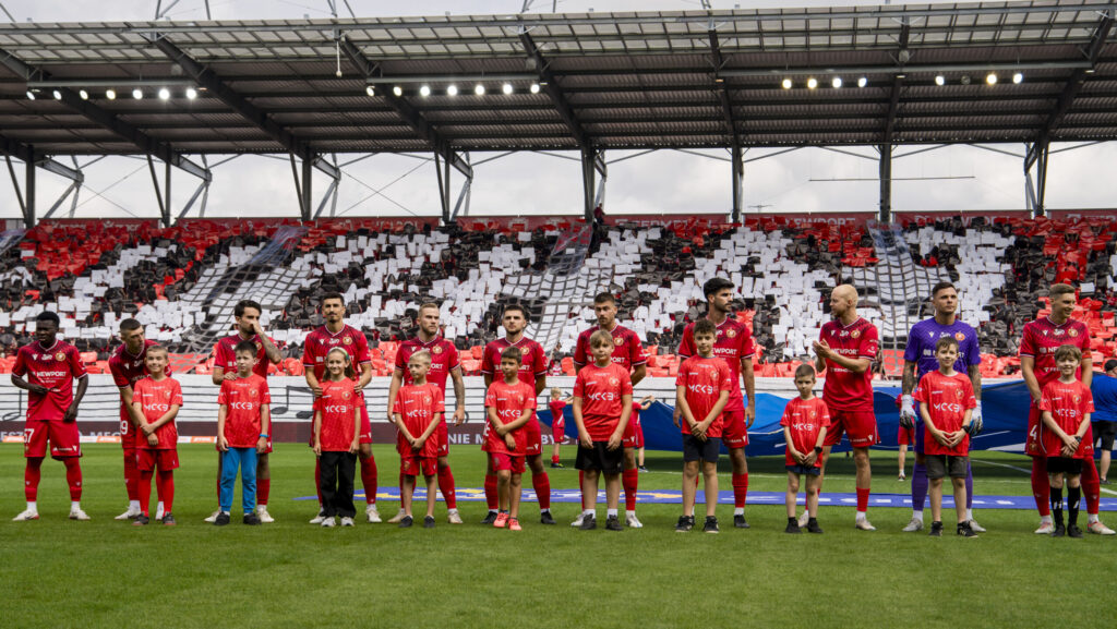16 728 widzów efektowną kartoniadą przywitało w rytmie „Tańca Eleny” swoją drużynę, co niewątpliwie musiało robić wrażenie. Ogólnie rzecz biorąc, postawa kibiców niezależnie od osiąganych wyników jest godna pochwały. Stadion niemalże zawsze pełny, głośny doping od pierwszej do ostatniej minuty powoduje, że odbiór meczu na żywo jest zupełnie innym doświadczeniem. Nawet jeśli na boisku nie dzieje się zbyt wiele. Tym razem na początek zmagań w sezonie 25-26, dwa sektory kibiców utworzyli oprawę pt. „Słuchaj głosu serca”.