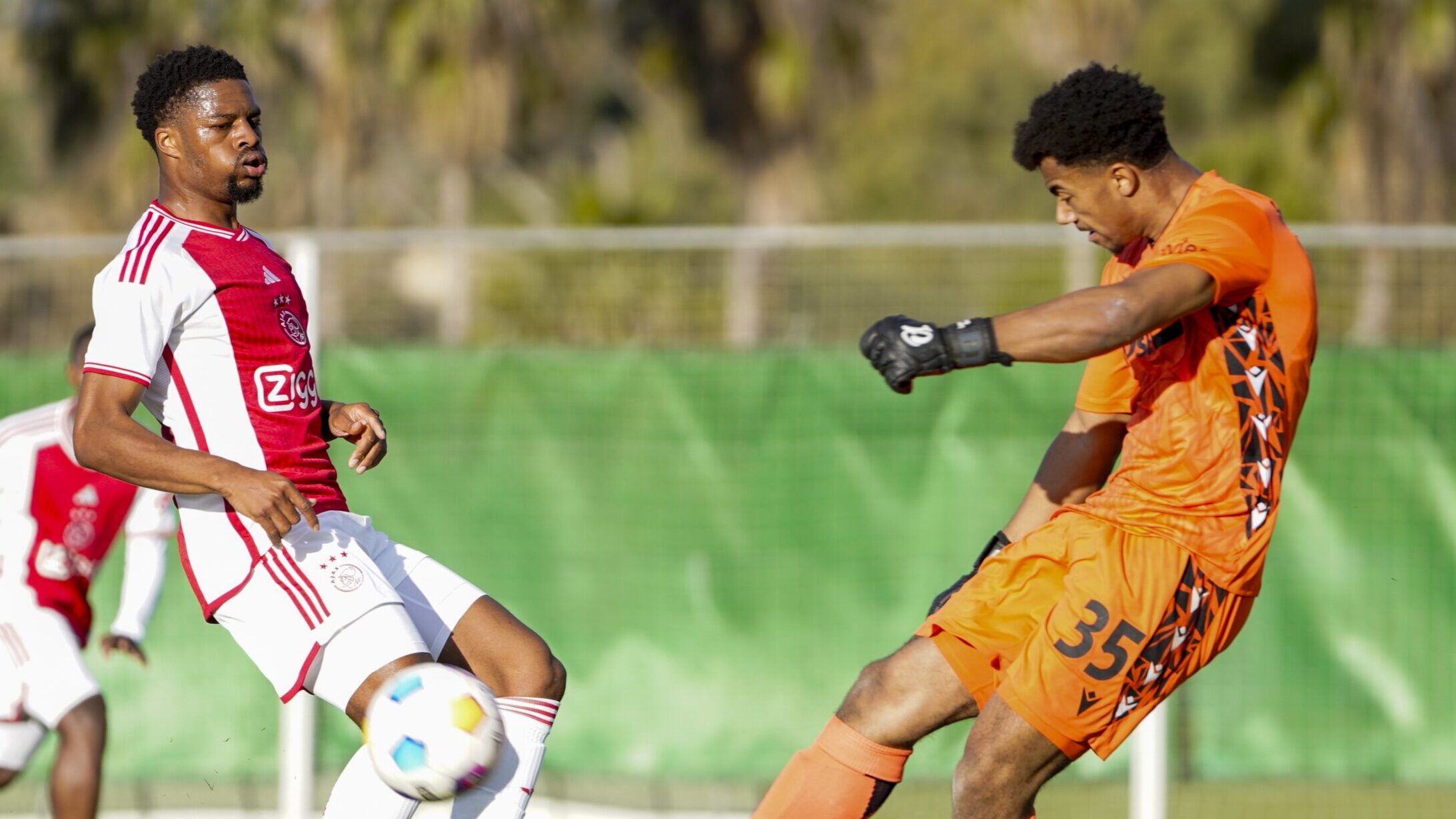 Cadiz, 06-01-2024 , Jerez de la Frontera , Dutch Eredivisie, Football season 2023 / 2024. Trainingskamp Ajax , Friendly between Ajax and Hannover’96 , Ajax player Chuba Akpom and Hannover 96 goalkeeper Leon-Oumar Wechsel (Photo by Pro Shots/Sipa USA)