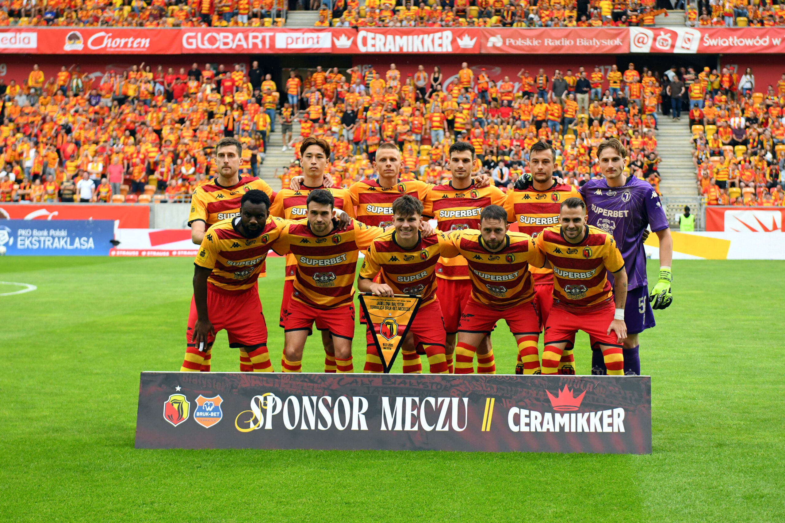 2025.07.18 Bialystok Pilka nozna PKO Ekstraklasa sezon 2025/2026 1. kolejka rozgrywek Jagiellonia Bialystok (zolto-czerwone) - Bruk-Bet Termalica Nieciecza N/z sklad wyjsciowy Jagiellonii Bialystok Foto Michal Kosc / PressFocus