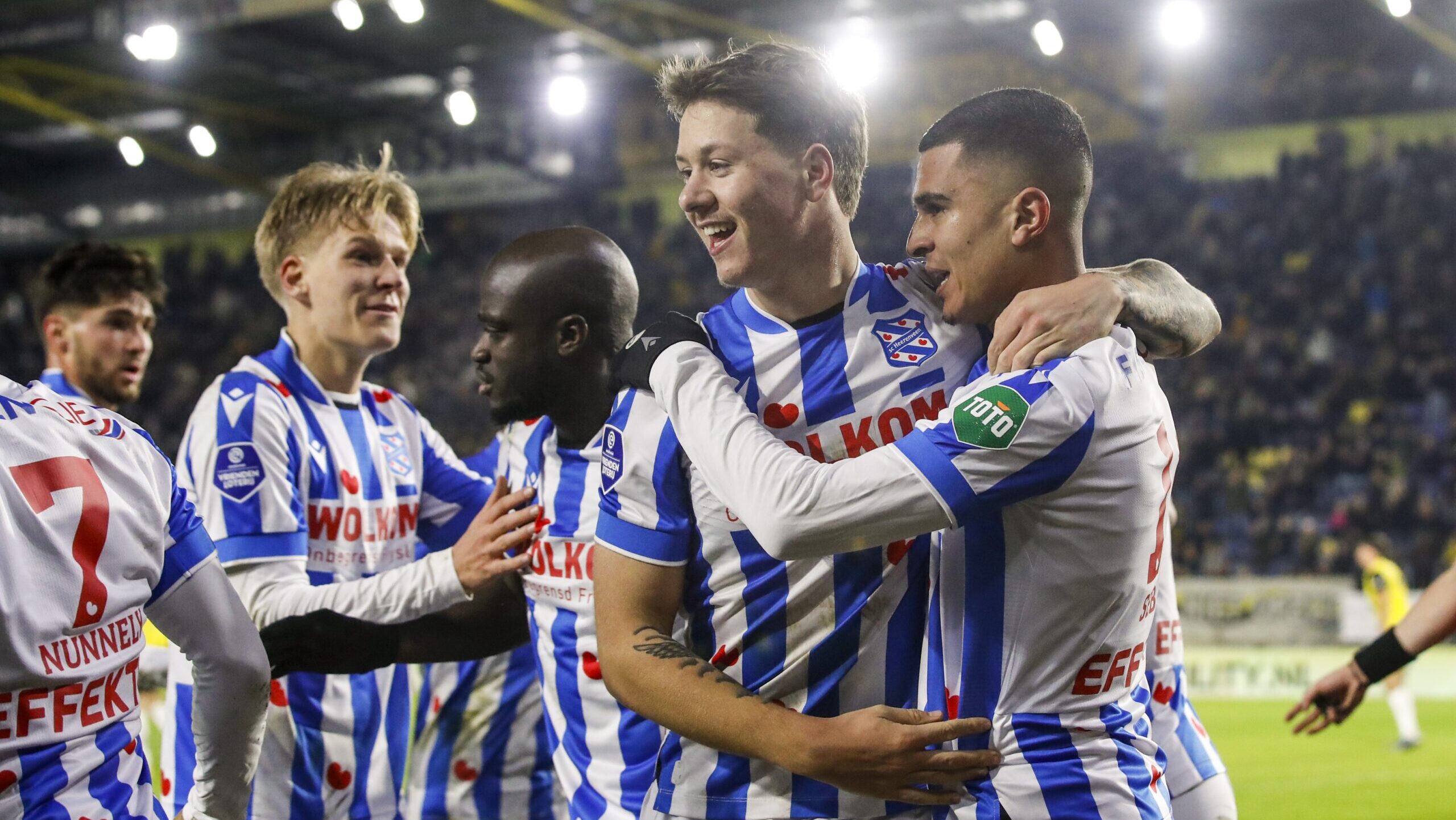 1/12/2025 - BREDA - (l-r) Che Nunnely of sc Heerenveen, Dimitris Rallis of sc Heerenveen, Ilias Sebaoui of sc Heerenveen, Che Nunnely of sc Heerenveen celebrate the 2-4 during the Dutch Eredivisie match between NAC Breda and SC Heerenveen at the Rat Verlegh Stadion on Jan. 12, 2025 in Breda, Netherlands. ANP BART STOUTJESDIJK /ANP/Sipa USA