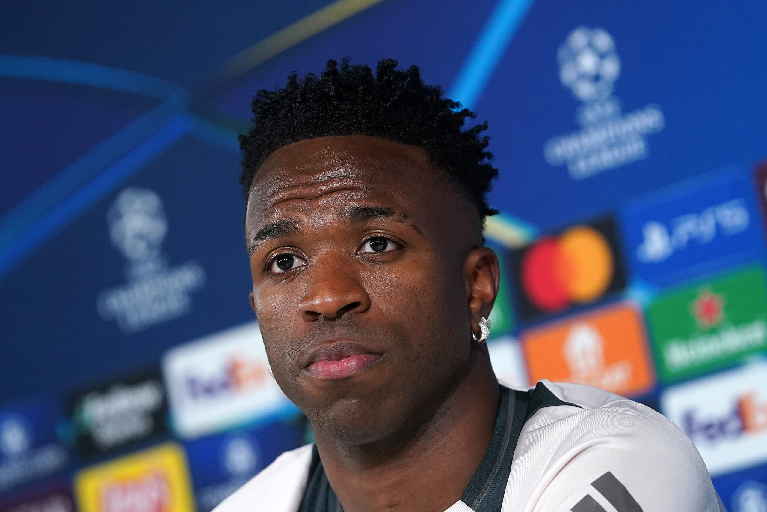 Real Madrid CF's Vinicius Junior during the press conference prior to the first leg of the Champions League Round of 16 against Atletico de Madrid. March 3, 2025. (Photo by Acero/Alter Photos/Sipa USA)