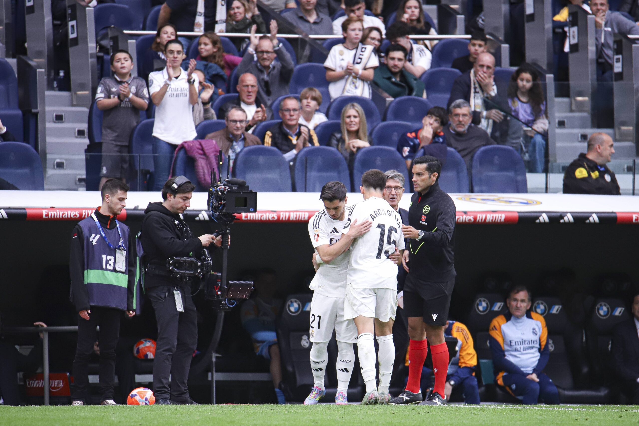 Spanish La Liga EA Sports soccer match Real Madrid vs Celta de Vigo at Santiago Bernabeu Stadium in Madrid, Spain, 04 May 2025 Arda Guler and Brahim Diaz 900/Cordon Press PUBLICATIONxNOTxINxFRAxESP 900/CordonxPress LOF - Real Madrid vs Celta