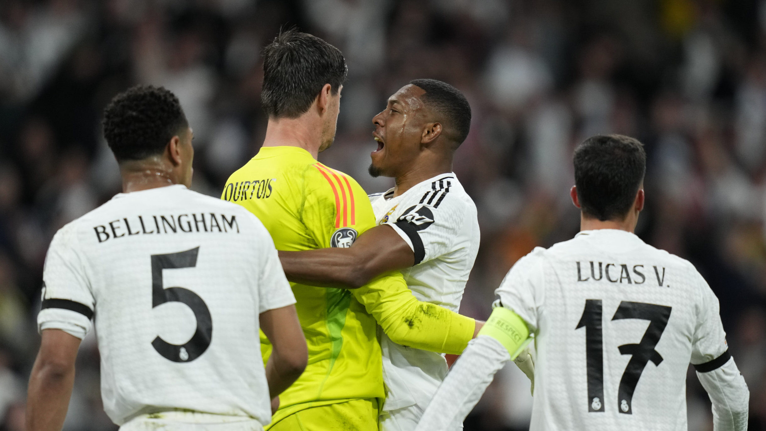 Thibaut Courtois of Real Madrid CF during the UEFA Champions League match, Quarter-finals, second leg, between Real Madrid and Arsenal FC played at Santiago Bernabeu Stadium on April 16, 2025 in Madrid Spain. (Photo by Cesar Cebolla / PRESSINPHOTO)