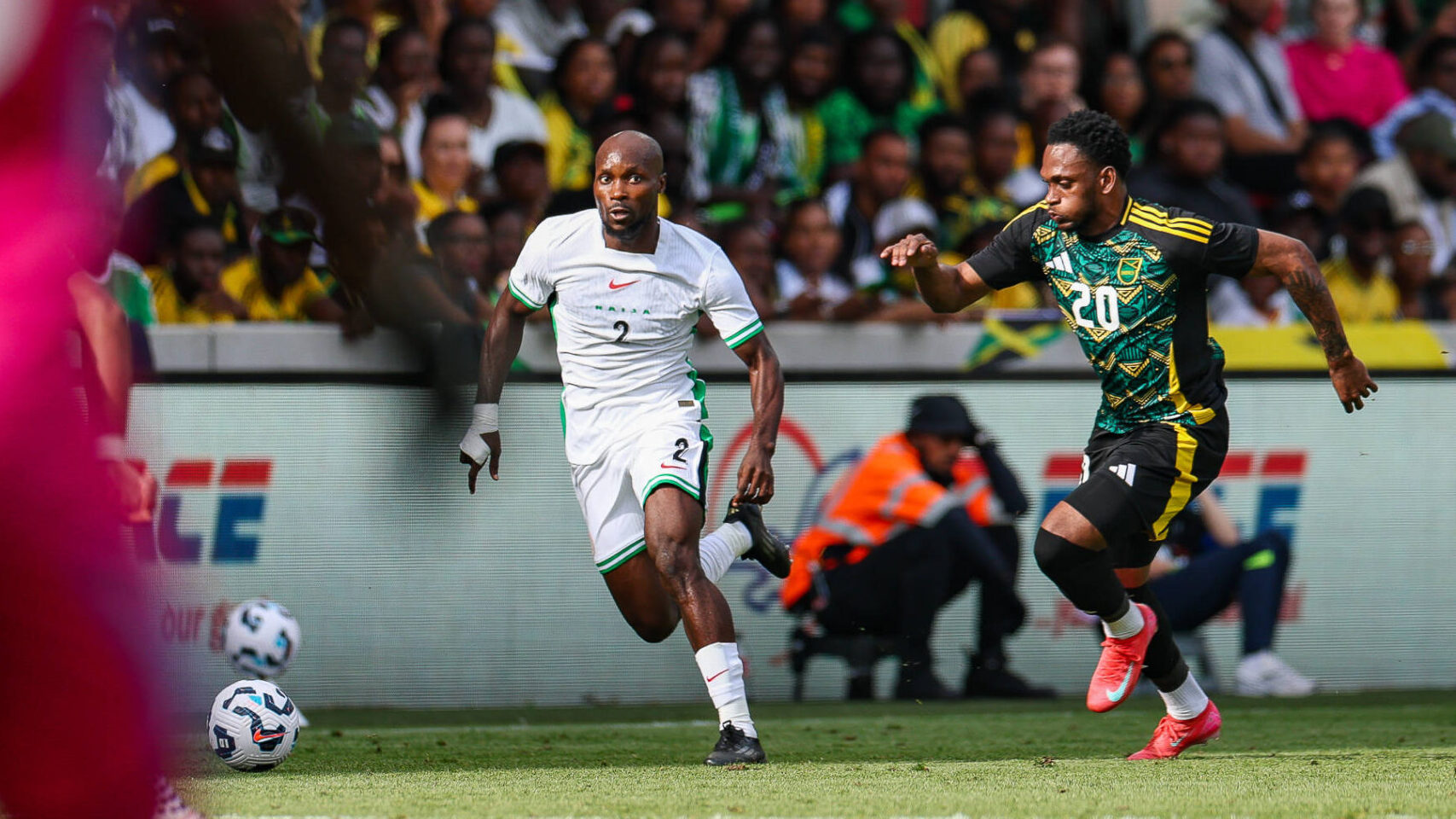 Jamaica v Nigeria Unity Cup London 2025 31/05/2025. Final Nigeria defender Sodiq Ismaila 2 and Jamaica forward Renaldo Cephas 20 during the Unity Cup Final, London 2025 match between Jamaica and Nigeria at Gtech Community Stadium, Brentford, England on 31 May 2025. Brentford Gtech Community Stadium Greater London England Editorial use only , Copyright: xToyinxOshodix PSI-22219-0002