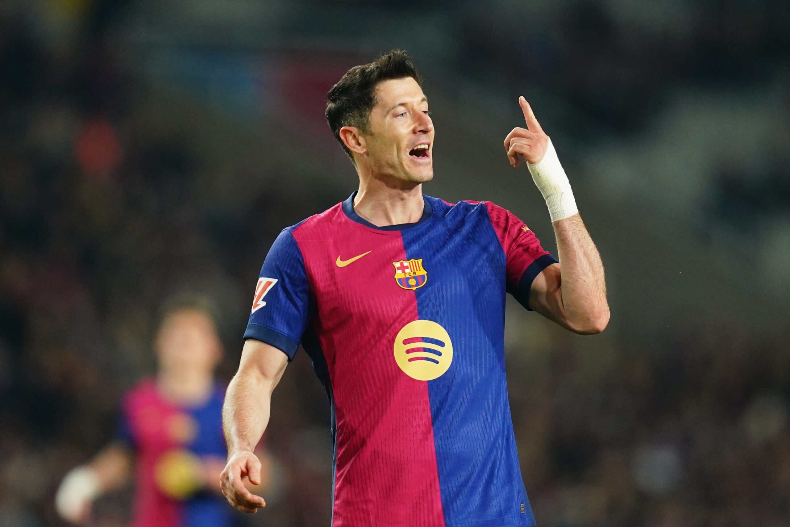 Robert Lewandowski of FC Barcelona during the La Liga EA Sports match between FC Barcelona and Rayo Vallecano played at Lluis Companys Stadium on February 17, 2025 in Barcelona, Spain. (Photo by Sergio Ruiz / Imago)  (Photo by pressinphoto/Sipa USA)