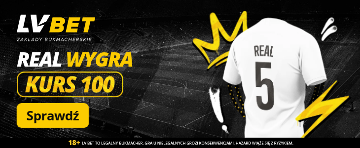 Z okazji małego hitu 5. kolejki La Liga, legalny bukmacher LV BET przygotował specjalną okazję, właśnie na to spotkanie. Jeśli jesteś przekonany, że Real pokona Espanyol, postaw swój pierwszy zakład na wygraną Królewskich, wcześniej wpłacając minimum 50 PLN. Wygrana drużyny ze stolicy Hiszpanii oznacza, że policzymy Ci wygraną po kursie 100! Pełny regulamin promocji znajduje się pod tym linkiem.