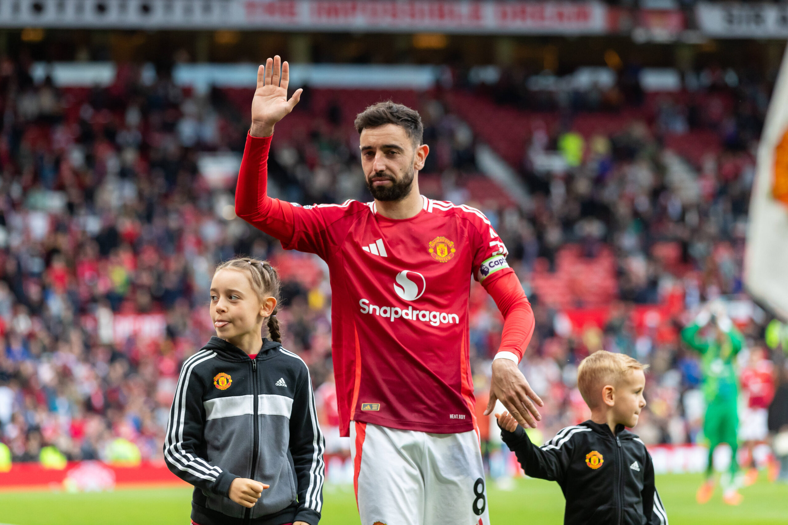 Bruno Fernandes of Manchester United, ManU waves at the fans at the end of the game during the Premier League match between Manchester United and Aston Villa at Old Trafford, Manchester, England on 25 May 2025. PUBLICATIONxNOTxINxUK Copyright: xThomasxGaddx PMI-6877-0055
