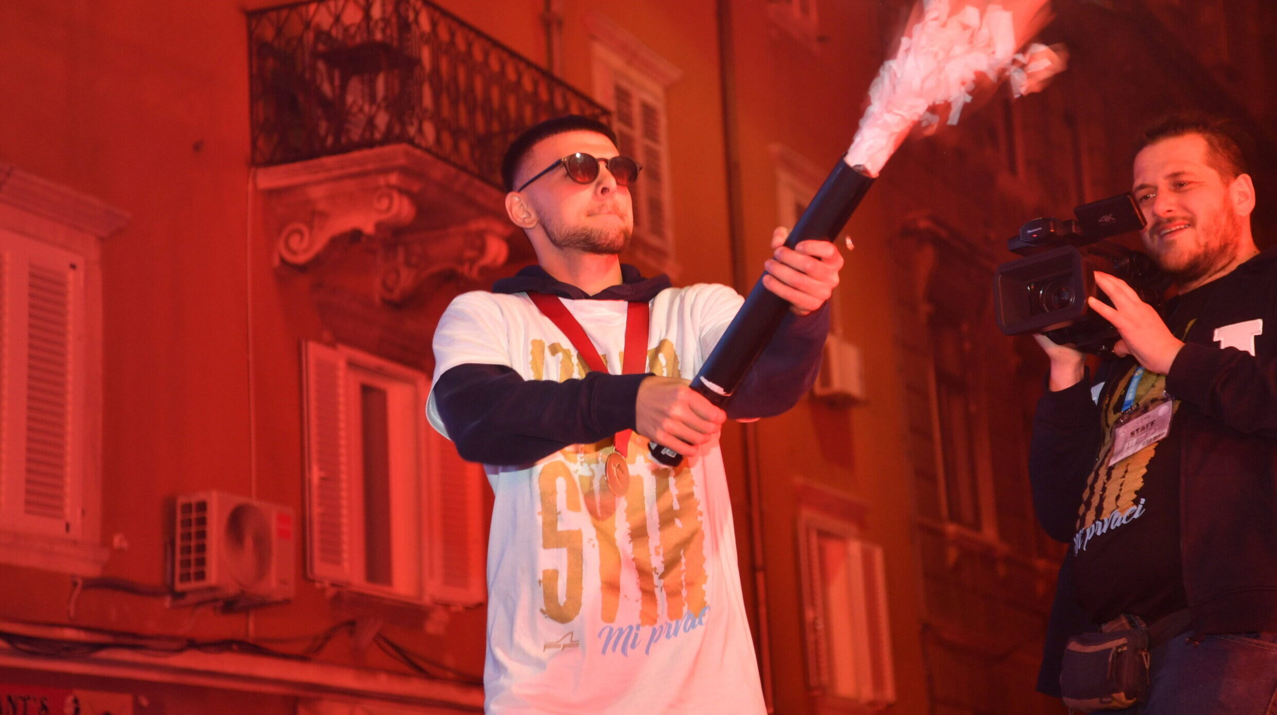 Rijeka, Croatia, 250525. Rijeka players celebrate with fans after winning the Croatian championship on Korzo. In the photo: Lindon Selahi. Photo: Damir Skomrlj / CROPIX Copyright: xxDamirxSkomrljx slavlje_rijeka9-250525