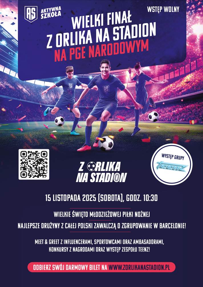 ORLEN S.A., Partner Strategiczny drugiej edycji ogólnopolskiego turnieju „Z Orlika na Stadion”, zaprasza na Wielki Finał rozgrywek. To największe w Polsce wydarzenie piłkarskie dla młodzieży odbędzie się już w najbliższą sobotę, 15 listopada 2025 roku na płycie PGE Narodowego w Warszawie.