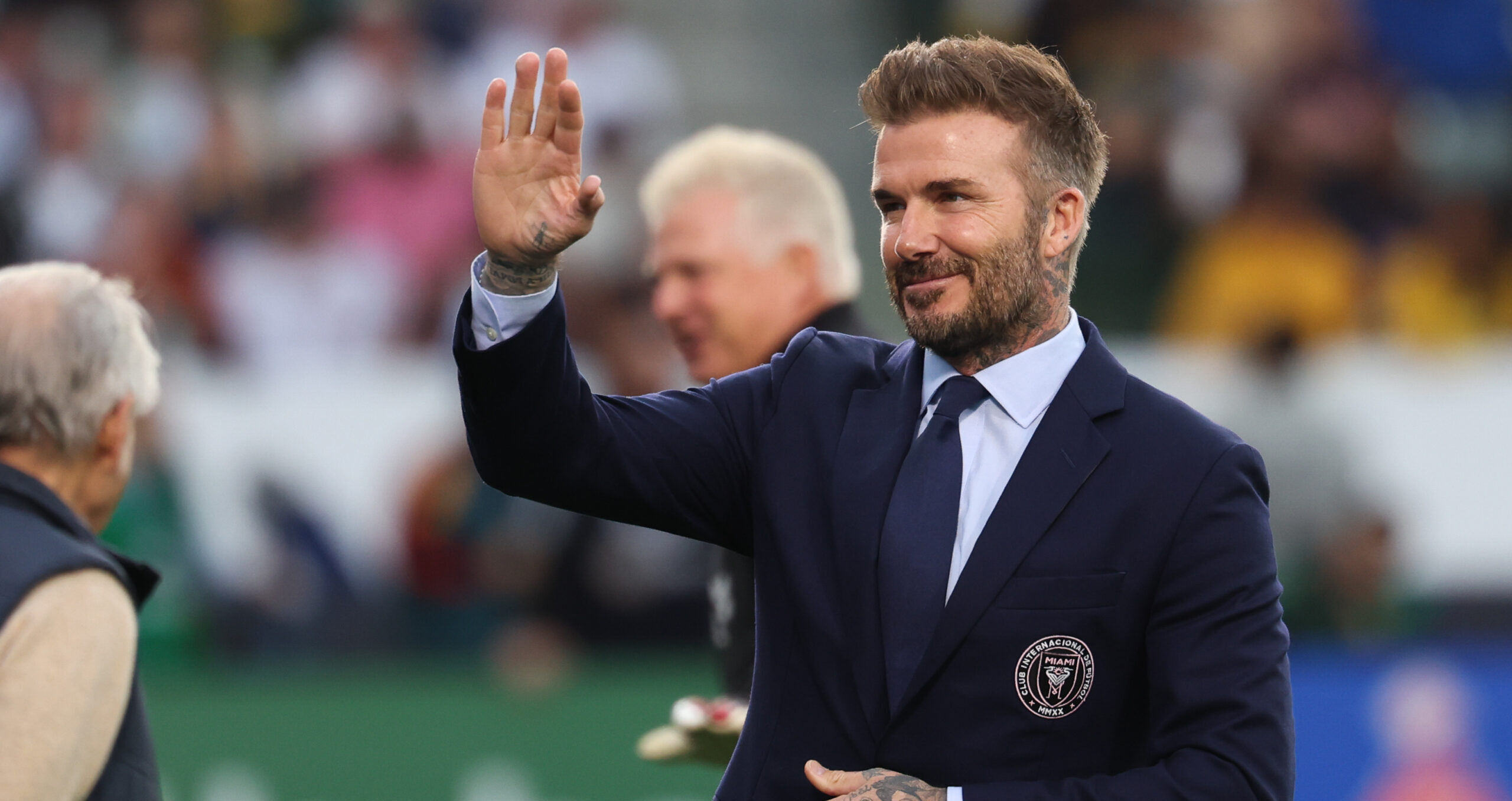 Feb 25, 2024; Carson, California, USA;  Inter Miami CF owner David Beckham on the field before the game against the LA Galaxy at Dignity Health Sports Park. Mandatory Credit: Kiyoshi Mio-USA TODAY Sports/Sipa USA