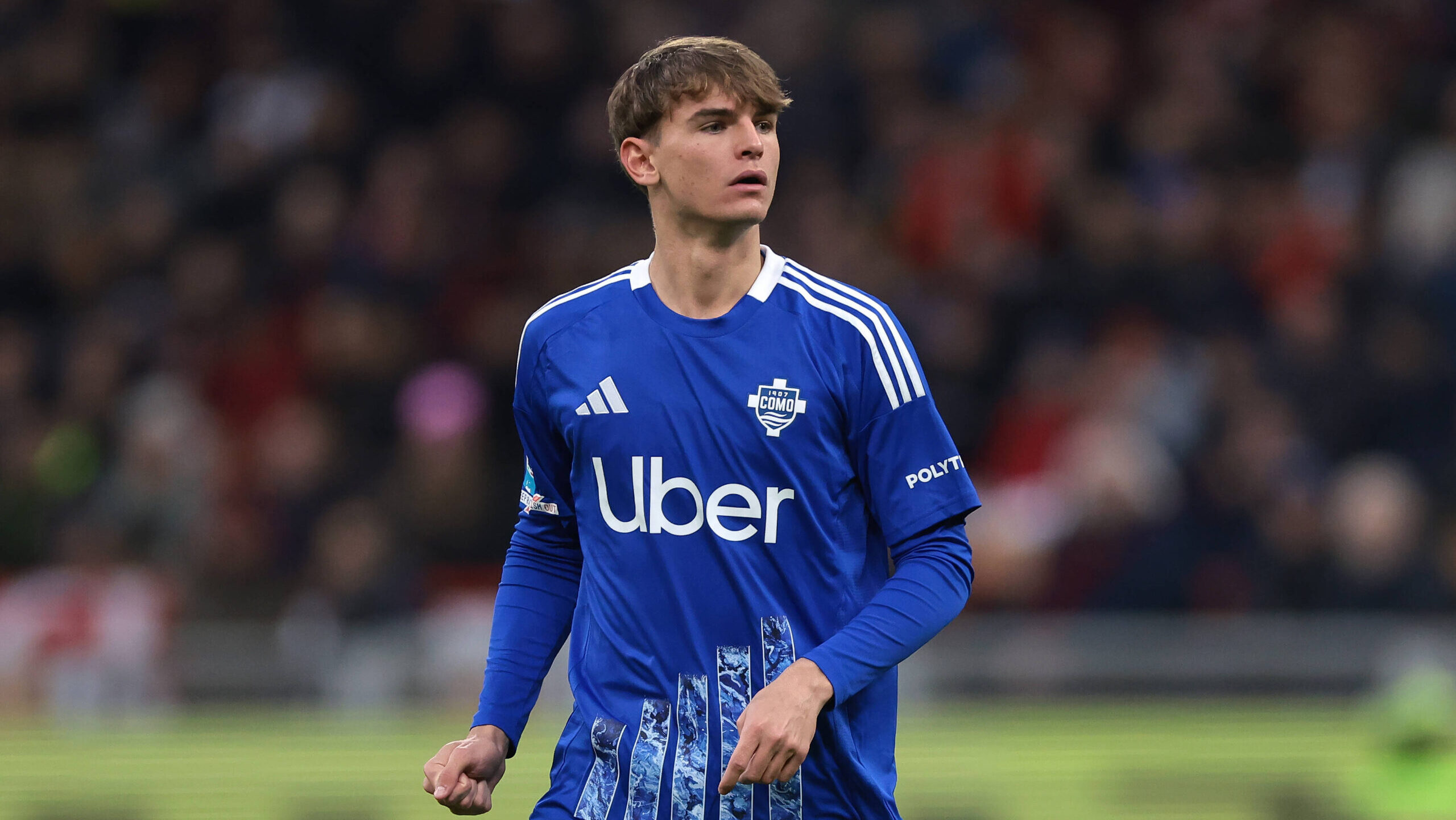 Milan, Italy, 15th March 2025. Nico Paz of Como 1907 looks on during the Serie A match at Giuseppe Meazza, Milan. Picture credit should read: Jonathan Moscrop / Sportimage EDITORIAL USE ONLY. No use with unauthorised audio, video, data, fixture lists, club/league logos or live services. Online in-match use limited to 120 images, no video emulation. No use in betting, games or single club/league/player publications. SPI_288_JM_MILAN_COMO_ SPI-3747-0288