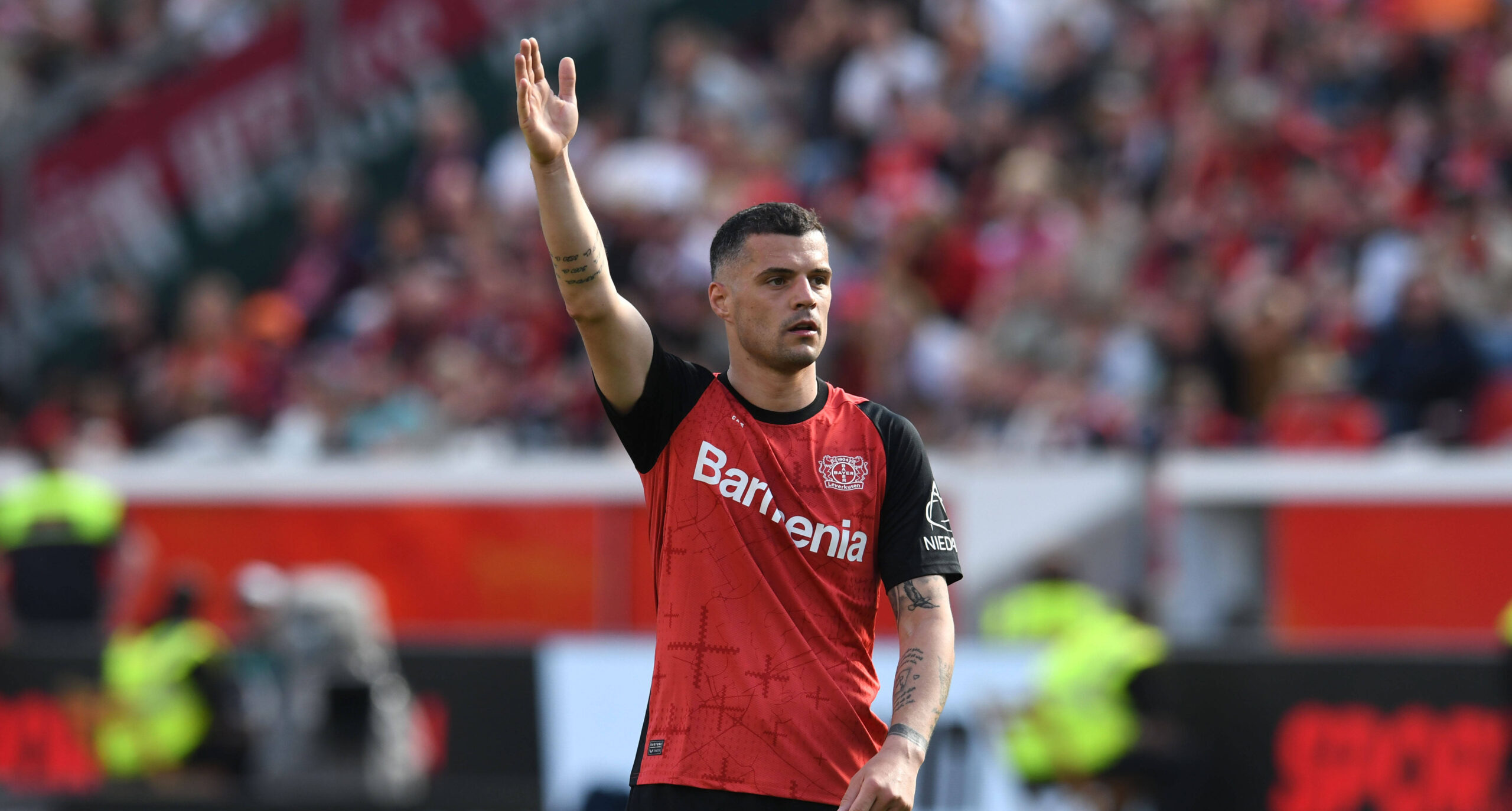 Granit Xhaka  Bayer 04 Leverkusen  gestikuliert. GER, Bayer 04 Leverkusen vs FC Augsburg, Fussball, Bundesliga, 31. Spieltag, Spielzeit 2024/2025, 26.04.2025 DFL REGULATIONS PROHIBIT ANY USE OF PHOTOGRAPHS AS IMAGE SEQUENCES AND/OR QUASI-VIDEO GER, Bayer 04 Leverkusen vs FC Augsburg, Fussball, Bundesliga, 31. Spieltag, Spielzeit 2024/2025, 26.04.2025 Leverkusen *** Granit Xhaka Bayer 04 Leverkusen gestures GER, Bayer 04 Leverkusen vs FC Augsburg, Football, Bundesliga, Matchday 31, Season 2024 2025, 26 04 2025 DFL REGULATIONS PROHIBIT ANY USE OF PHOTOGRAPHS AS IMAGE SEQUENCES AND OR QUASI VIDEO GER, Bayer 04 Leverkusen vs FC Augsburg, Football, Bundesliga, Matchday 31, Season 2024 2025, 26 04 2025 Leverkusen Copyright: xEibner-Pressefoto/ThomasxThienelx EP_TTL